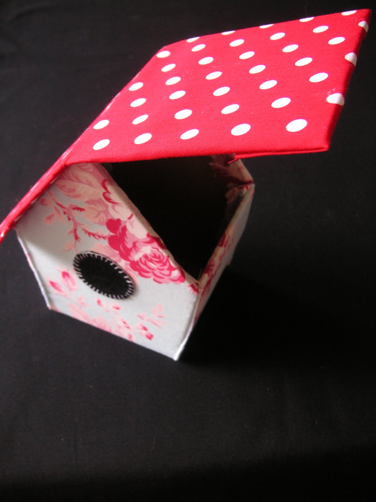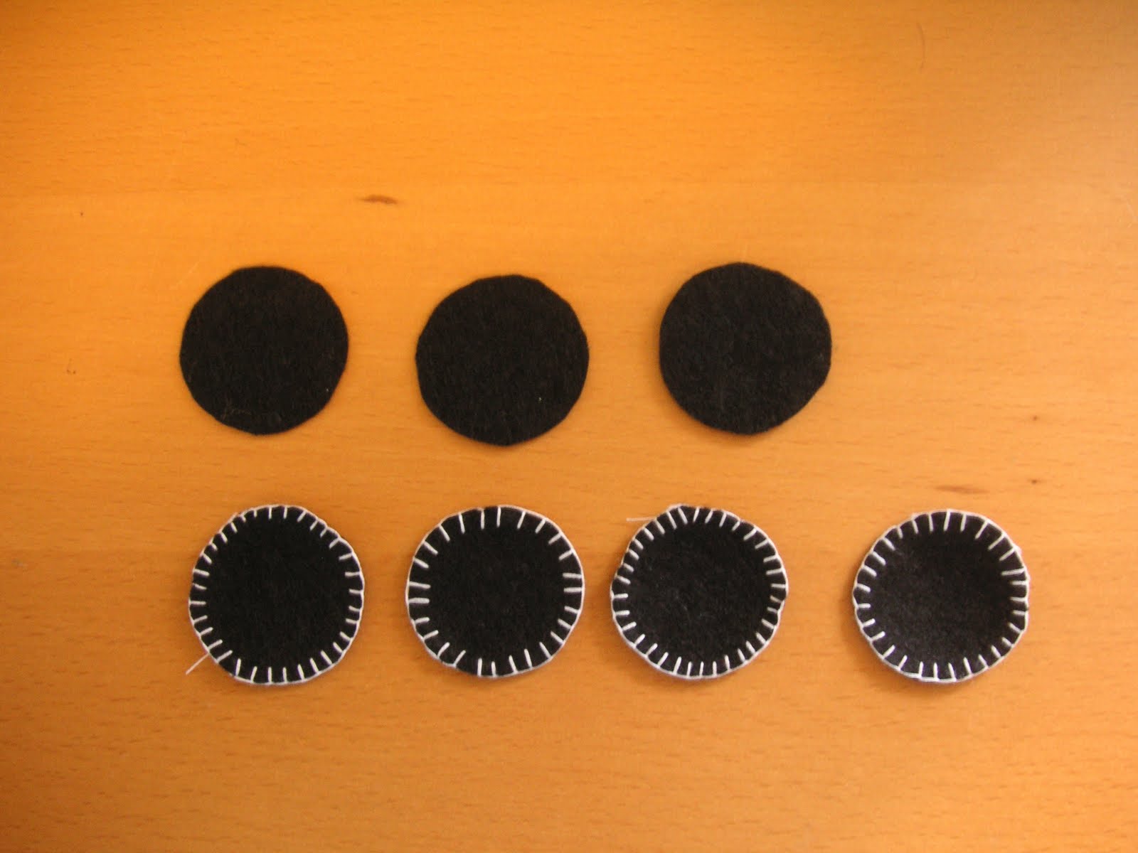 Now cut out some black felt circles to stick on the front of your birdy house (as the hole) I blanket stitched around mine to make them neater.