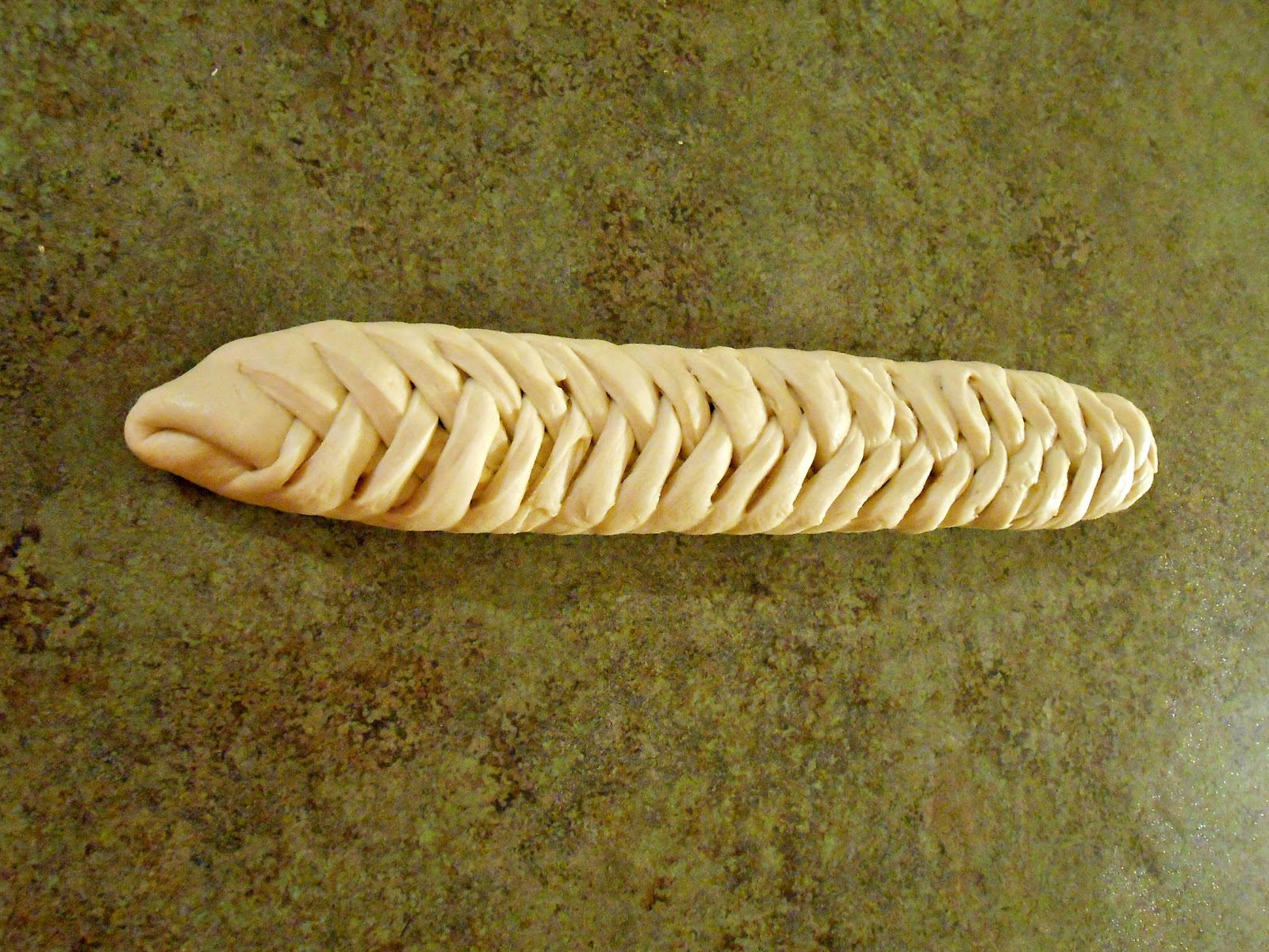 Using a pizza cutter, cut slits down each side of dough. Try to make equal slits on each side or you'll come out lopsided.