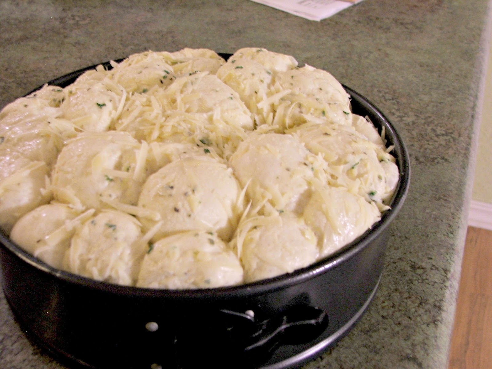 Melt butter in a large microwaveable dish. Add the parsley, garlic, salt, Italian seasoning and onion powder. Stir to combine, then add the mozzarella cheese. Now, throw in all your dough halves and using your hand move dough around until it is all evenly coated.