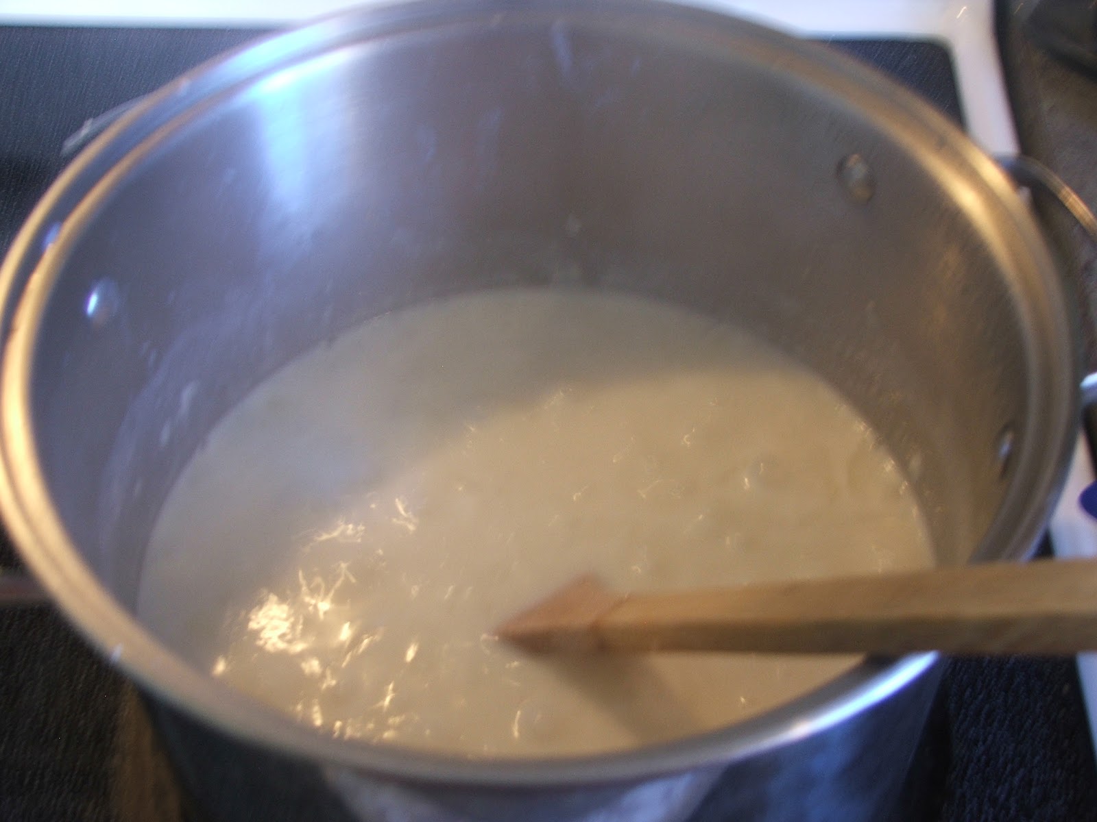(As you can tell my nice pot got scorched when I wasn’t as careful as I should have been, and nothing I do will remove the stain on the bottom of my pan…anyone have any ideas for me??? So please just disregard the hideous looking pot…but I can assure you it did not affect the yumminess of the soup!)