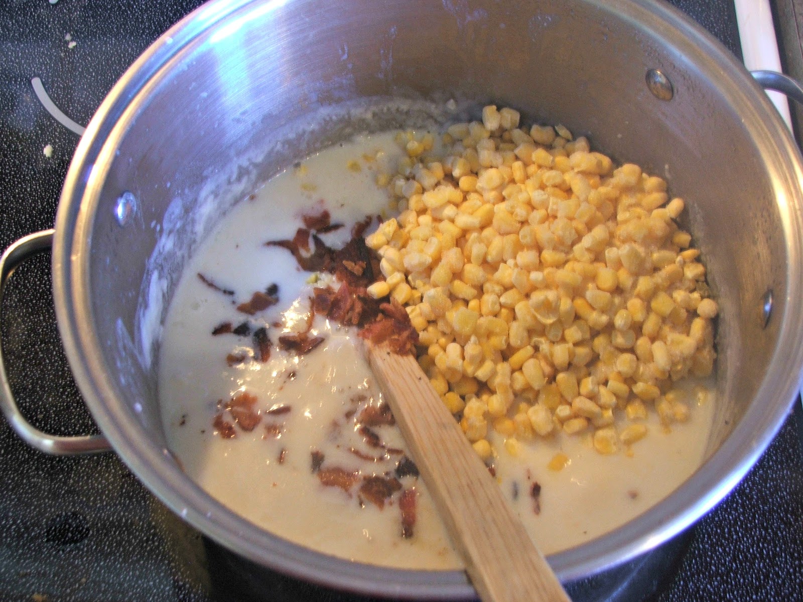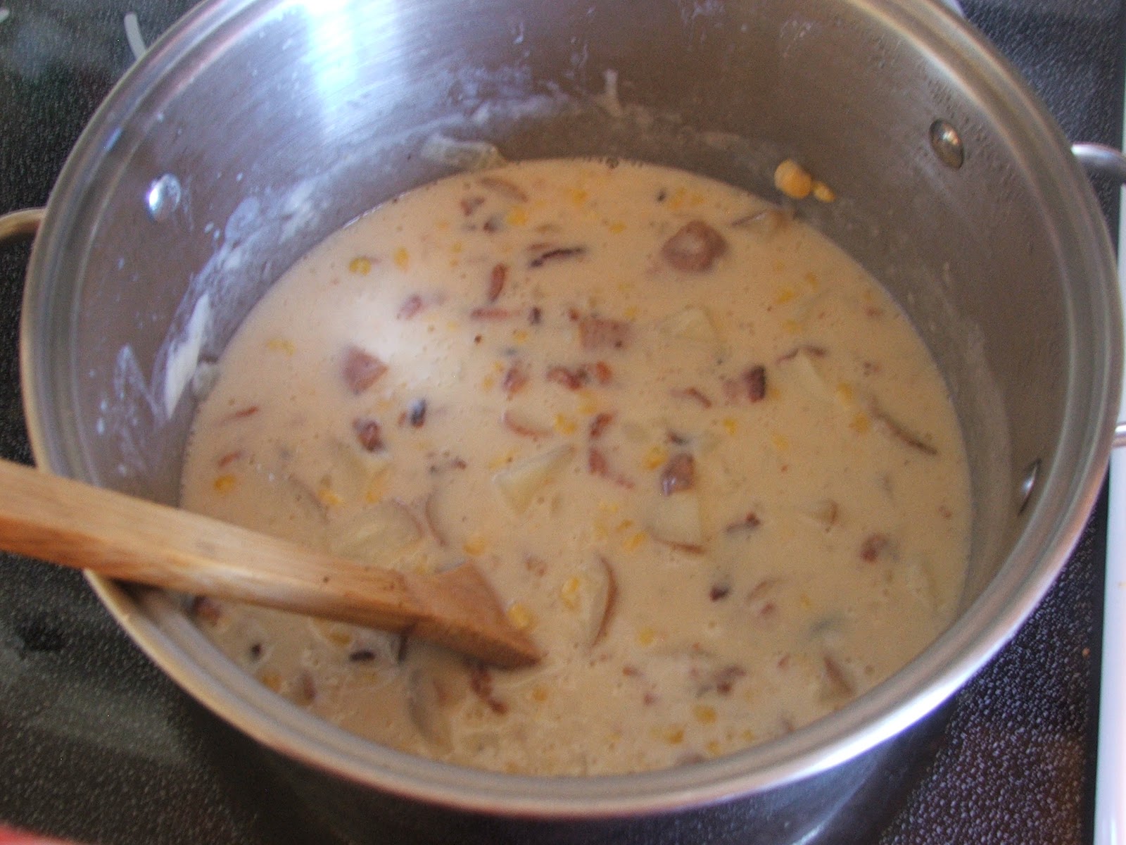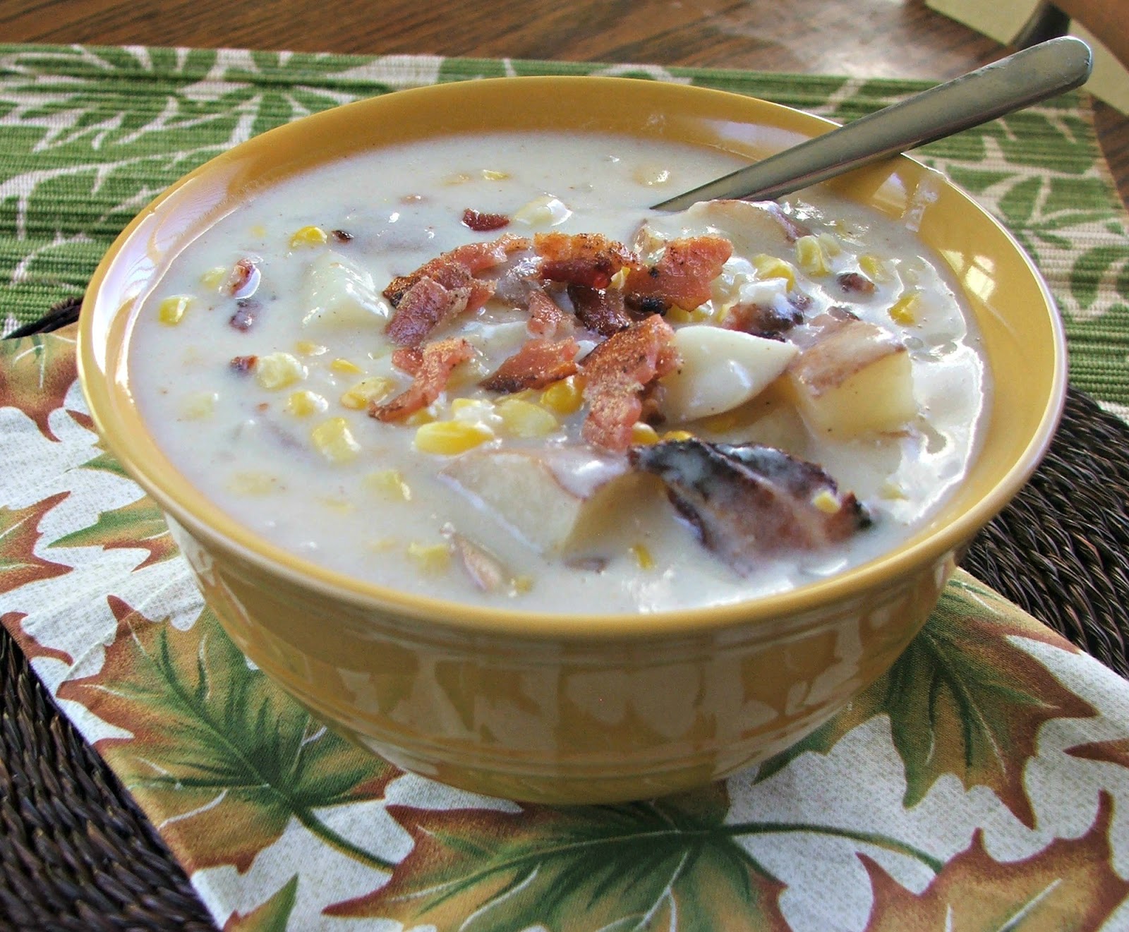 It is so creamy but is made with skim milk (you really could use whatever “flavor” you have at your home…we have skim so that’s what I use). I also love the red potatoes in this…skins and all. And the corn. And of course the bacon! Really, there’s nothing to not love about this soup! Note: If you’re looking to keep this recipe lower in fat & calories you can make it more “figure-friendly” by substituting turkey bacon or center cut bacon along with the skim milk.