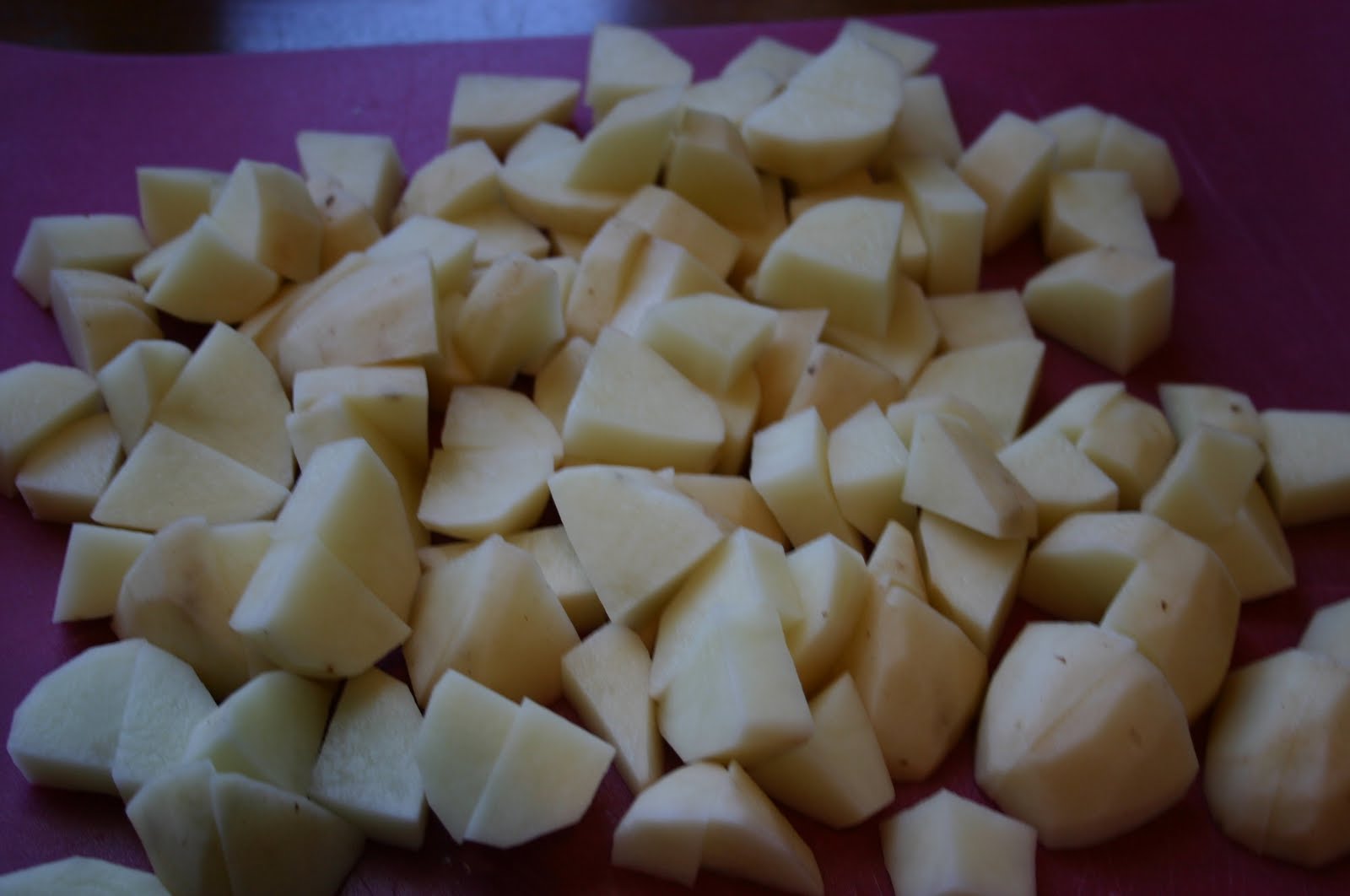 Cut up the potatoes in small cubes.