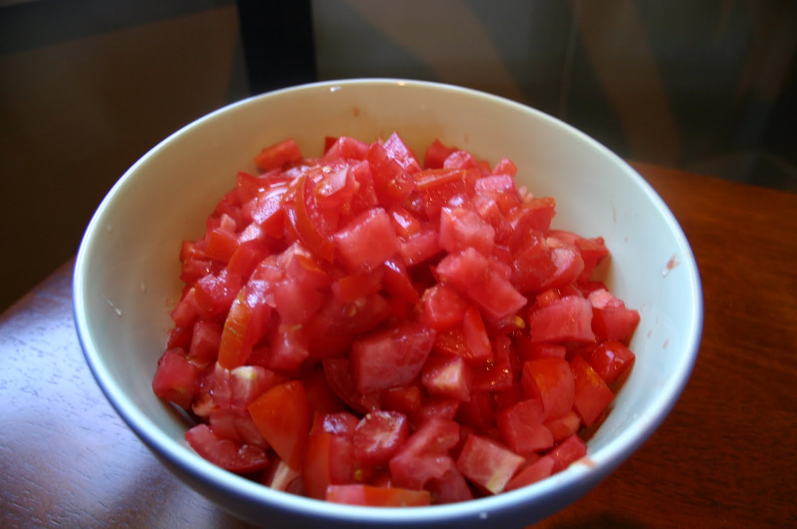 Cut these beauties up, I like it chunky like pico de gallo, but I will blend half of it for the hubs.