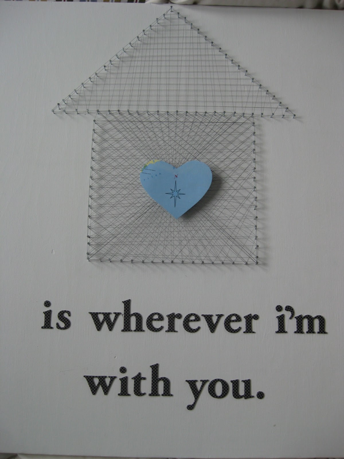 Here is the original song. Love it! All marriages have their ups and downs,twists and turns, but through it all, home is how I feel about my husband. Hence, my thread art for our bedroom: