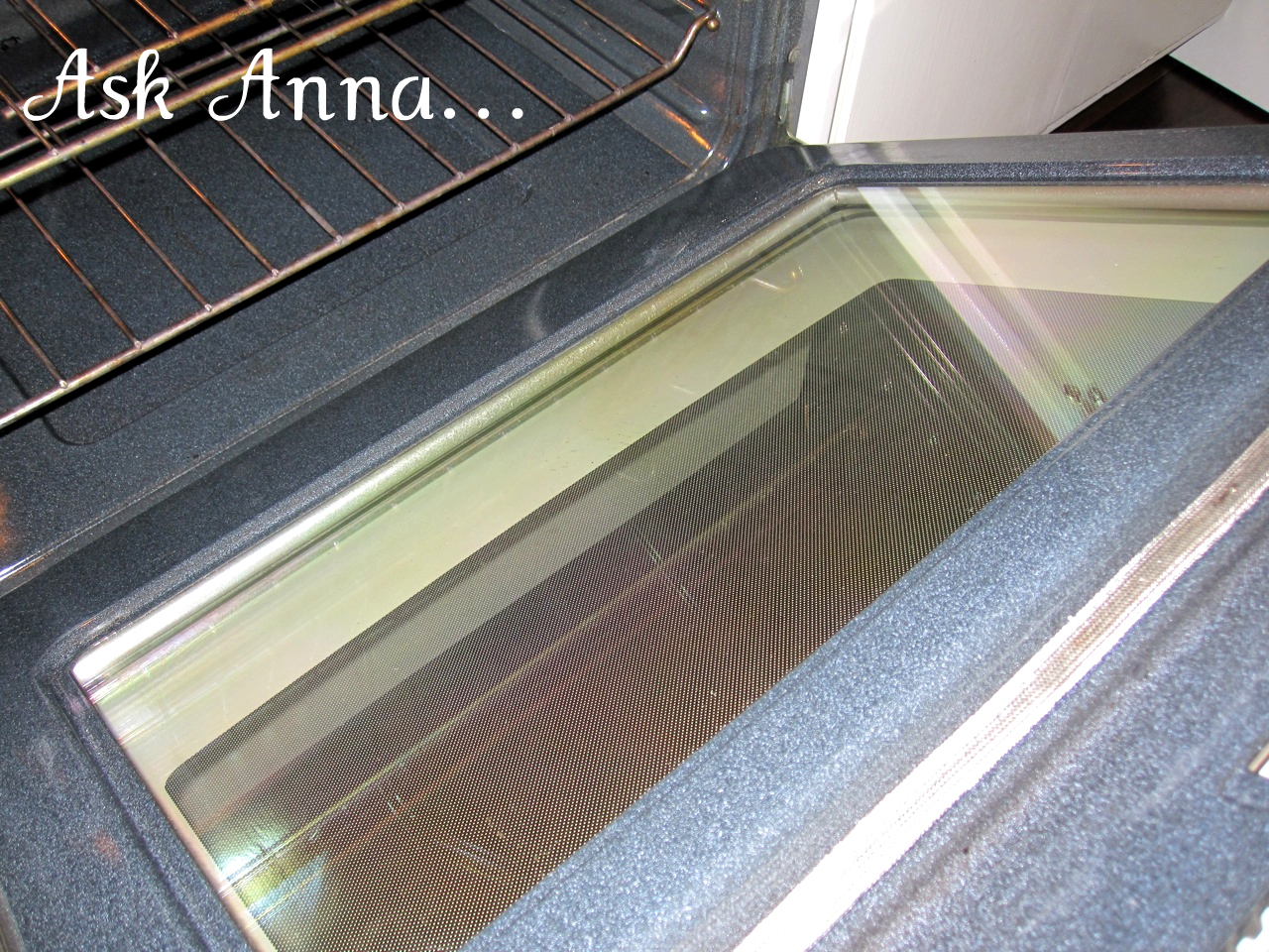 I have never found a good solution to removing the cooked-on grime on my oven glass. However last week after posting about Discoloration on the Oven a reader asked me the dreaded question: “Now, can someone tell me how to clean inside the window of my oven?”