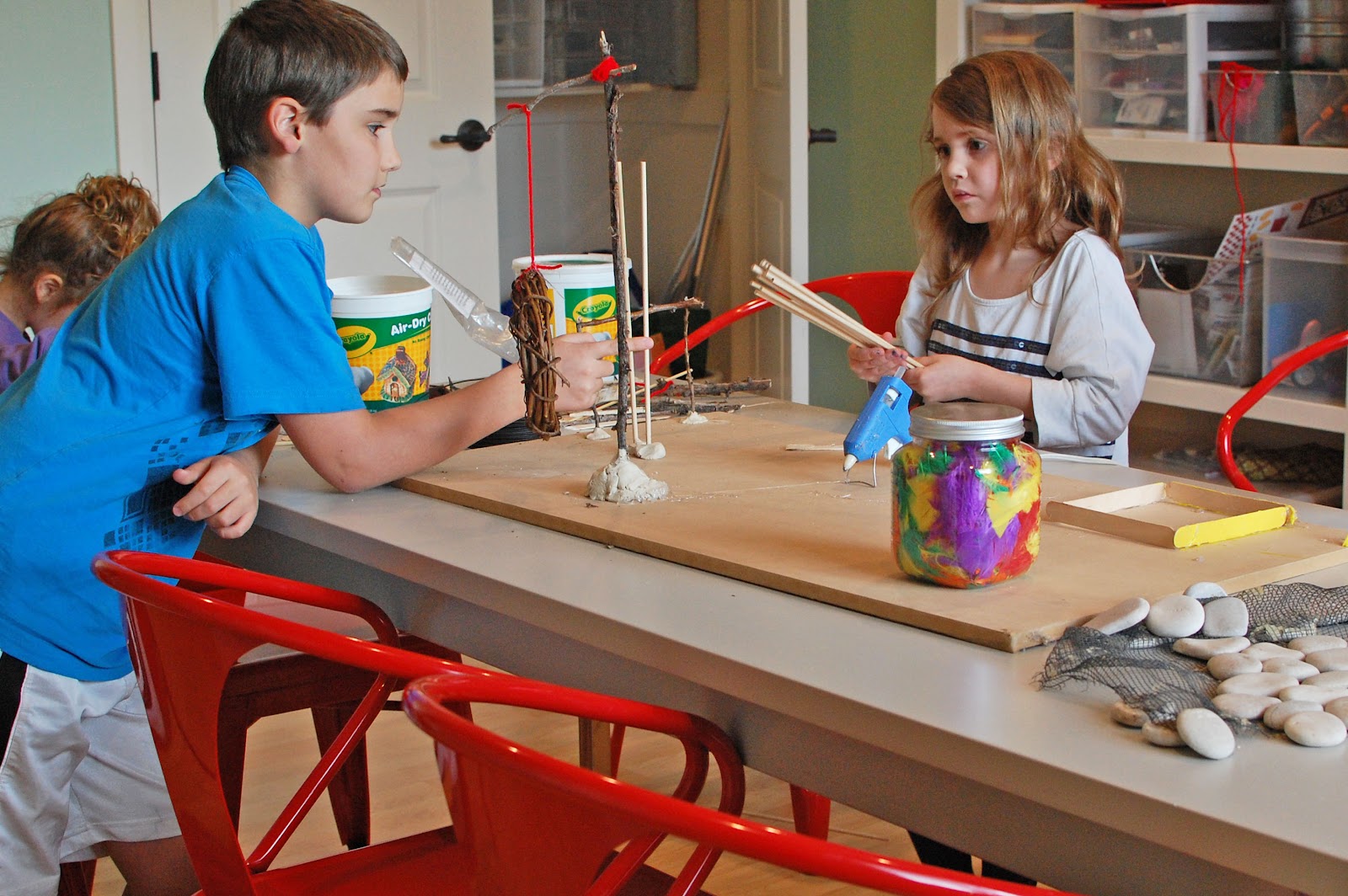 They used sticks, rocks, yarn, clay, paint, and anything they could find…plus, about 20 sticks of hot glue.