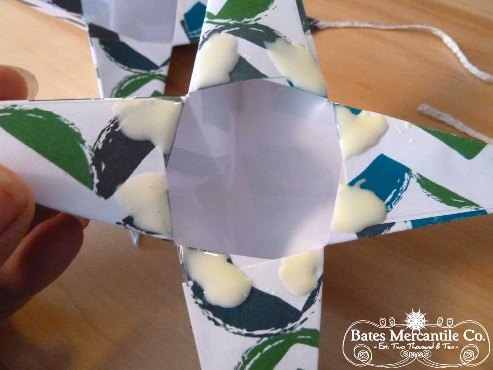 Now glue one flap at each ‘star’ point, and pull other flap over and hold until glue is set.