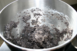 In a food processor or mixer, mix the whole package but 3 cookies. When they are broken up finely, add the softened cream cheese and mix together.