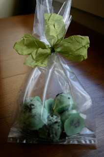 My cute neighbor brought these over one day, and I ate them so fast Nick didn’t even have a chance to try one! So I made these for him today. They are so easy even the kids enjoyed helping me. It actually took a couple of tries to get them to “look” just right. But no one minded eating the “ugly” ones:) They’re perfect for a St. Patrick’s Day treat!