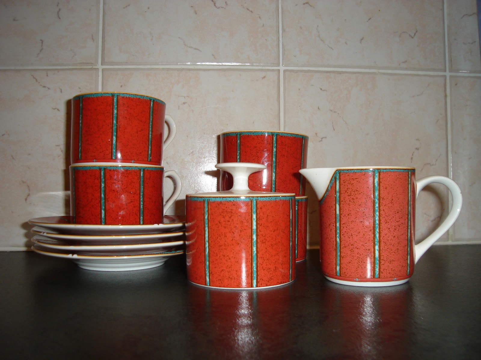 When I was married, my husband and I were given a Sosume “Terracotta” dinner set from his direct supervisor at work, which I have used nearly every day. Unfortunately, this use everyday has meant that I am now down one plate and one bowl, but I still have four tea cups and four saucers, a sugar bowl and a milk jug. Guess what? I am considering putting this aside for her as a tea set from the ’90’s, and purchasing a new dinner set to use by the whole family when we move in January.