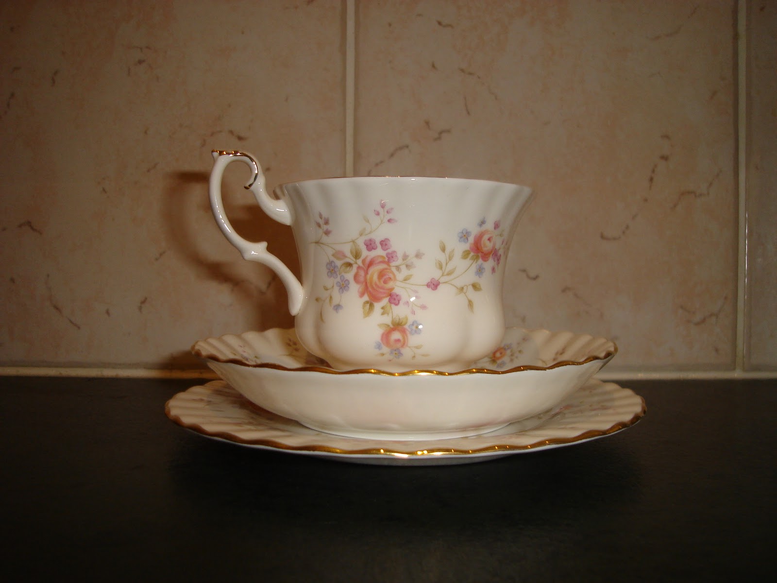 Anyway, from about the age of ten, my sister and I got as part of our Christmas present (from Mum and Dad and also from other relatives) part of a Royal Albert (an English brand) dinner set each. I got Peach Rose pattern, which is now discontinued and she got Memory Lane.