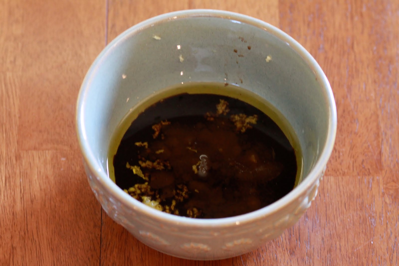 Grate the ginger, chop the garlic and jalapeno, and add all the other dressing ingredients together.